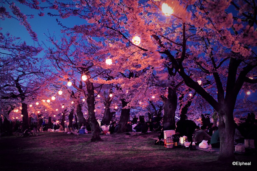 Coming out from the tower after dark, the park has morphed into an entirely different beast. Dim, mysterious and vividly coloured, the blossoms turned the park into a gorgeous labyrinth of neons and blooms and erm, barbecued meat smog.
